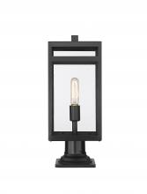 Include an industrial light source on your patio or porch with this one-light outdoor pier mounted fixture made from steel. It features a versatile black finish and a crisp, clear glass shade.