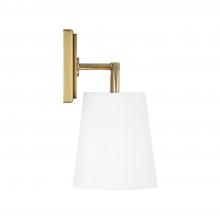 6"W x 11"H 1-Light Sconce in Aged Brass with White Fabric Shade