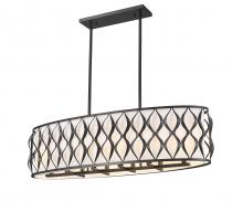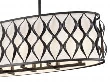 Classic styling delivers both modern industrial and transitional elegance to any space as this ten-light linear chandelier makes an artisan impact over kitchen islands, dining spaces, and billiards rooms. With a wavy ribbon pattern on its matte black finish steel frame and a white fabric diffuser, this stylish fixture maintains palette simplicity and offers a versatile look. Candelabra lights are gently filtered to manage glare levels, emitting an optical glow that?s easy on the eyes.