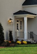 Defying convention, the Broughton series of outdoor lanterns is a well orchestrated craftsmen design with transitional elements. Beveled glass and a decorative loop on the lantern tops are crowning touches, along with stepped design on the top for added di