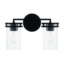 14.25"W x 9.75"H 2-Light Vanity in Matte Black with Clear Glass