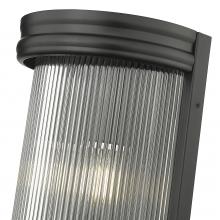 A deep matte black finish brings casual versatility to a modern two-light wall sconce. Distinctive architectural glass is ribbed vertically to refract light and create a sense of opacity, offering excellent light diffusion and a bold, artistic touch. A striking upgrade for your foyer, hall, or living room.