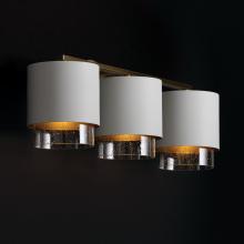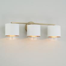 3-Light Cylindrical Metal Vanity in Matte White with Matte Brass Interior and Seeded Glass (9RNTD)