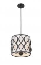 Embrace the timeless design bridging industrial and modern style motifs with a three-light pendant with a bold matte black finish over steel framing. A drum silhouette is aesthetically pleasing as this fixture offers artisan ribbon waves cascading vertically down its banded frame, and a soft white fabric diffuser maintains pleasing lighting effects. Candelabra-style lights and a round canopy complete a checklist of features that round out an iconic look in a pendant that adds elegance to kitchens, foyers, and dining spaces.