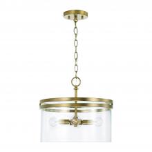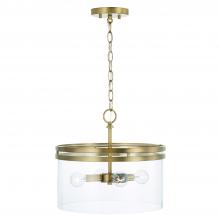 14.5"W x 12.75"H 4-Light Dual Mount Pendant or Semi-Flush in Aged Brass with Clear Glass