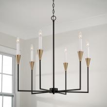 6-Light Chandelier in Black and Aged Brass with Interchangeable White or Aged Brass Candle Sleeves (9RLX7)