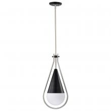A modern collection with a twist, the Admiral 60-7913 medium pendant features a dual finish, unique design, and a fashionable statement for home luminaires. A suspended tear-dropped shape is comprised of matte black with brushed nickel elements encompassin
