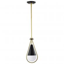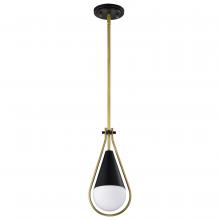 A modern collection with a twist, the Admiral 60-7903 medium pendant features a dual finish, unique design, and a fashionable statement for home luminaires. A suspended tear-dropped shape is comprised of matte black with natural brass elements encompassing