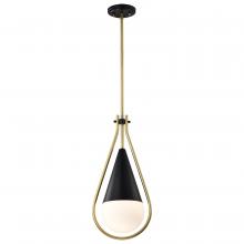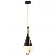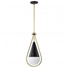 A modern collection with a twist, the Admiral 60-7902 small pendant features a dual finish, unique design, and a fashionable statement for home luminaires. A suspended tear-dropped shape is comprised of matte black with natural brass elements encompassing