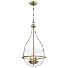 Amado 3 Light Pendant; 14 Inches; Vintage Brass Finish; Clear Glass (A65D2)