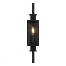 The Savoy House Ascott 1-light outdoor wall lantern is a standout source of cool contemporary lighting style for great first impressions. Sleek and slender, Ascott features a center-mounted light inside panes of clear seeded glass in a sharply angled frame. Matte Black finish. Ascott is 21.5" in height, 4.5" in width and extends 6.25" from the wall. Uses one candelabra size bulb of up to 60 watts. The bulb is not included. Wet area rated.