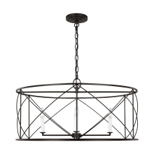 The Beatrix series by Chapman & Myers is open-caged design chandelier adding a bright light to any modern farmhouse home decor. It features white candelabra candle holder and refined finishes, showing a classic and rustic flair. Each lantern has a distinctive X cross detailing on their frame which adds both strength and visual interest. Ideal for over a kitchen island or dining room table.