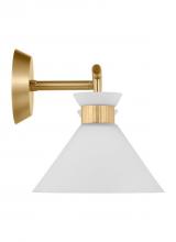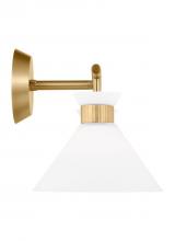 • The flared glass shade with ribbed metal details and etched white glass of this light bring clean lines and classic mid-century modern design to any wall or bath space