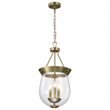 Boliver 3 Light Pendant; 11 Inches; Vintage Brass Finish; Clear Seeded Glass (A65CQ)