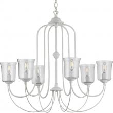Clear chiseled glass shade encircles elegant light sources gathering quietly at the light fixture’s center.;Cottage white light bases with sophisticated curved arms originate from a decorative knob that embellishes the outer bottom of the textured glass