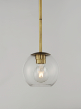 Vessels of heavy weight Clear glass are supported on frames of solid brass finished in a hand rubbed Natural Aged Brass finish. A versatile collection of up and down configurations which can be directly attached to the canopy or extended down by the rods s