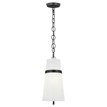 The simple, transitional Cordtlandt pendant and flush mount series features a perfectly proportioned conical hanging shade with an optional metal band cinching it at the waist.