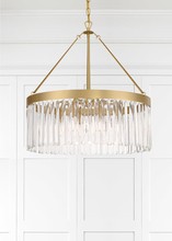Art deco design is exemplified in the Emory collection. The collection features a row of smooth glass prisms hanging from a steel frame. Both the Black Forged and Modern Gold finishes, add all the sparkle and glamour you need in a fixture.