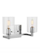 The Fullton two light vanity fixture in Chrome is sleek, contemporary, and uber minimalistic. Visual interest is created using a mix of rectangular and round frames, a subtle design detail. Although this collection is contemporary, it can be mixed in with variety of collections with ease.