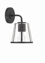 The tailored and versatile Fulton wall sconce has contrasting materials to create an eye-catching display. This fixture features a tapered glass shade that casts illumination downwards, providing bright illumination to your modern bathroom. The white or clear glass is wrapped in a metal ring with tailored lines creating an elegant contrast. Finishes include Polished Nickel, Antique Gold, and Matte Black.