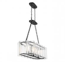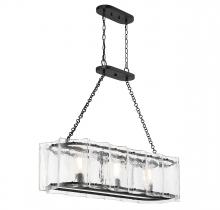 Bring a beautiful ocean-inspired lighting look to your home with the Savoy House Genry 3-light trestle. This linear design is decorated with rippling panes of handmade glass and finished in matte black. Genry is 31.5" in height, 41" in length and 13" in width. It uses 3 standard size bulbs of up to 60 watts per bulb (bulbs not included).