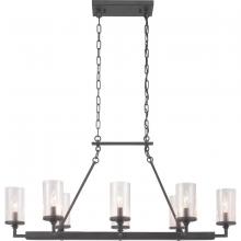 Gresham Collection Eight-Light Graphite Clear Seeded Glass Farmhouse Chandelier Light