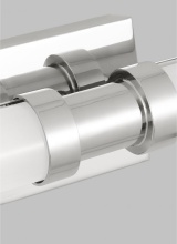 • Industrial, transitional fixture with durable sleek frame is safety listed for damp locations including bathrooms or powder rooms