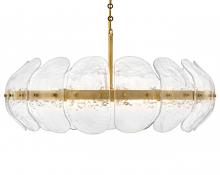 Inspired by the organic elegance of blooming water lilies, Lillia’s large shade is formed from gently curved glass panels. Subtle handcrafted texture creates natural variations in illumination, accentuated by a classic Heritage Brass finish.