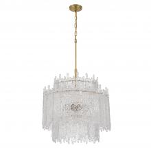 The Ackerly Collection showcases stunning ice glass, a textured material that resembles frozen or cracked ice. Its frosted, crystalline surface uniquely scatters light, producing a soft, diffused glow. This organic, sculptural effect adds a modern yet slightly retro touch to the design. The Ackerly Collection combines elegance with an artistic, edgy aesthetic, making it a standout in any space.