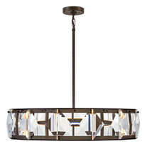 Jolie is a unique blend of sophistication, style, and technology. Integrated LEDs are sleekly concealed within gleaming Heritage Brass rings at the top and bottom of the design. Robust blocks of faceted crystal radiate with light, creating a transfixing silhouette while providing outstanding illumination.