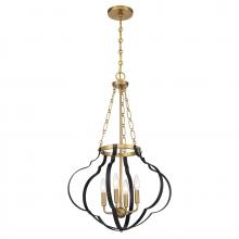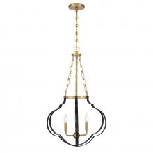 The magnificent Mercer 4-light pendant from Savoy House takes a traditionally-inspired design and gives it a fresh twist with an open, airy structure featuring the iconic quatrefoil shape. The Matte Black with Warm Brass Accents finish is a standout of two-tone allure. Mercer is 32" in height and 20" in width. It uses four candelabra size bulbs of up to 60 watts per bulb. Bulbs not included. Comes with 120" of chain.