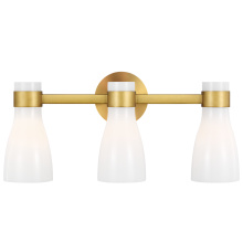 The Moritz five-light single-tier chandelier in burnished brass is created around a linear frame. It includes five glass shades initially inspired by the form of classic task lamps, giving it a contemporary twist. A beautiful focal point in living and dining rooms.