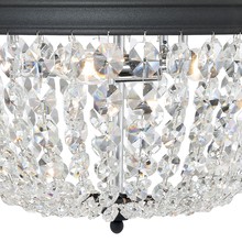 The Nola is a modern take on the traditional crystal basket ceiling mount. This beloved classic style comes in various sizes and finishes to enhance any décor. Its clean-lined frame and draping crystal body will add classic sophistication to any home.