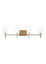 Oak Moore is a universal vanity series available in four finishes. Curved bar detail and etched white shade give it a transitional look. Install the light with glass shades up or down to light up every corner of your room. The shades are made of Etched White glass to cast a soft light throughout your vanity area.