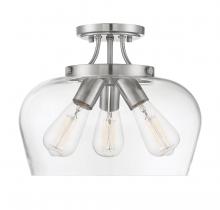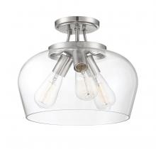 In the Savoy House Octave 3-light ceiling light, a bold light-colored frame and streamlined silhouette create an air of elegance and sophistication. The satin nickel finish and large clear glass shade go with everything. Whether you have transitional, contemporary, bohemian or other decor styles in your home, you’ll love the way this Octave ceiling fixture will stylishly blend in. And at 13" wide by 11" high with a semi-flush mounting, it fits almost anywhere, too. The curved, bowl-shaped glass shade has a graceful, uncluttered look and three 60W standard size bulbs provide lovely light for clean, casual style in your dining area, living room, entryway, kitchen, bedroom, family room, hallway, office or great room.