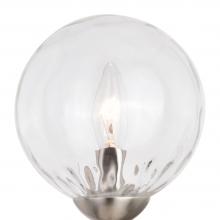 The Olson is a new take on a familiar mid-century modern design. The dimpled clear globe glass shade is supported by a fresh satin nickel rod. Combine that with a vintage Edison style filament bulb to complete the look. This wall sconce is ideal for bathrooms, hallways, stairways, foyers, and more.