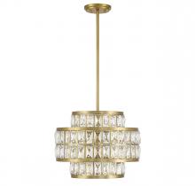 It is often said that lighting is the jewelry of the home and the Savoy House Renzo 3-light pendant is a perfect example of this saying. Faceted clear crystal decorates the two layers of shades, which overlap in an intriguing way and are finished in warm brass. Renzo is 16" in width and has an adjustable height ranging from 18" to 66". Comes with four 12" downrods and one 6" downrod. It uses 3 standard size bulbs of up to 60 watts per bulb (bulbs not included).