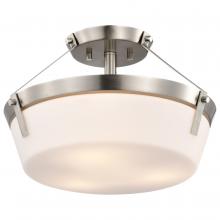 The Rowen 60-7763 semi-flush mount is a versatile lighting fixture that exudes elegance and sophistication. The brushed nickel finish gives the fixture a chic and inviting look, while the etched white glass diffuses the light to create a soft and ambient g