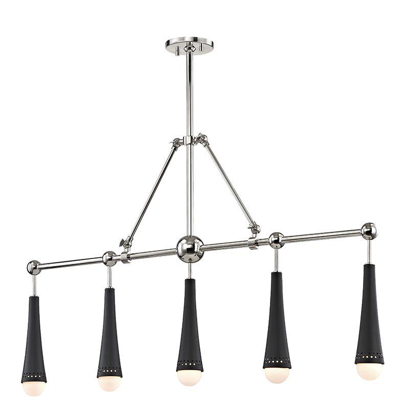 Evocations of geometry, nature, and organic chemistry all ring off our Tupelo family. LED light sources glow from within white opal diffusers designed to look snugly wedged into Tupelo’s black cones. A double-row of perforation allows this light to shine through the holes in the textural black metal. On both an engineering and design front, Tupelo’s a contemporary piece.