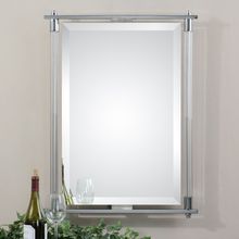 Ribbed Glass Columns Accented with Polished Chrome Plated Details. Mirror Features A Generous 1 1/4" Bevel and May Be Hung Horizontal or Vertical.