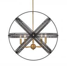 Dark Bronze Bands With Mesh Patterns Are Inter-wrapped To Form The Sphere Shape Body Of This Striking 5 Lt Pendant Enhanced With An Antique Brass Center Cluster And Accents. 5-60 Watt Max, Candelabra Sockets. Bulbs Not Included. Supplied With 15' Wire, 3-12" Stems And 1-6" Stem For Adjustable Installation.
