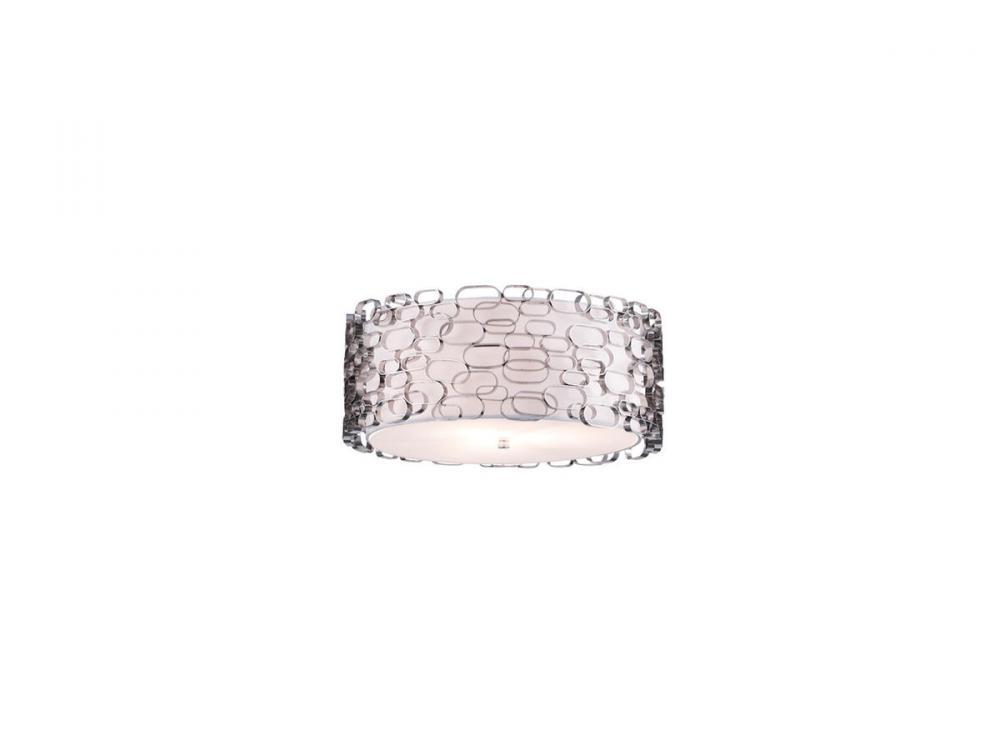 Inspired by the trend of pattern prints, bring in a modern focal point to your space with The Ventura Blvd. Collection round flush mount with its clean lines of hand crafted oval metal pattern over a beautiful ivory silk drum shade.