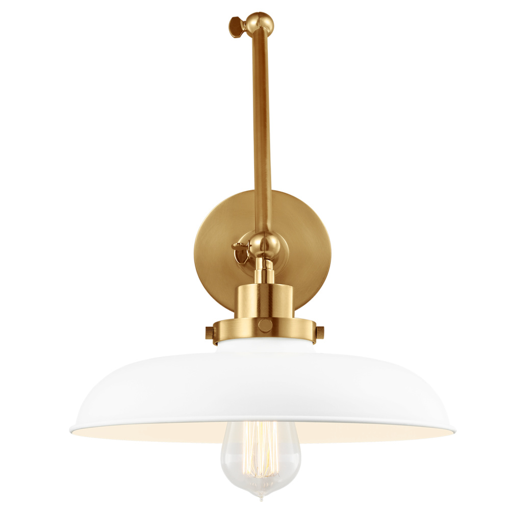 The Wellfleet one light wall sconce by Chapman & Myers is inspired by various classic utility silhouette’s - from factory lighting to barn sconces - capped by contrasting metal hardware. Each shade of the Wellfleet collection is available multiple sizes of 3 versatile profiles; either a flat farm dome, a traditional factory dome, or tapered cone. The shades are available with either a black or white finish and are paired with either a burnished brass or polished nickel collar, chain and canopy.