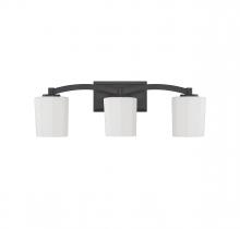 Get understated glamour for the bathroom with this Savoy House Whitney 3-light bath vanity light. Fluted shades of opal etched glass offer up a flattering glow, the curving arm adds intrigue and the matte black finish adds versatility. Whitney is 8" in height, 24" in width and extends 6.5" from the wall. It uses three standard size bulbs of up to 60 watts per bulb (bulbs not included).